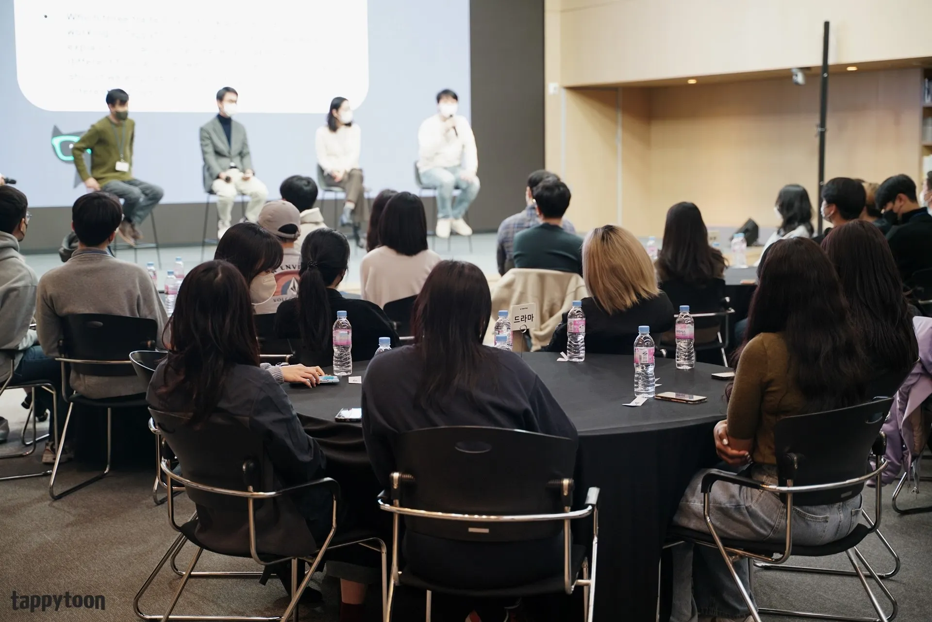 한자리에 모인 태피툰 Gems 모두 세분의 발표에 고개를 끄덕이며 경청하는 시간을 가졌습니다