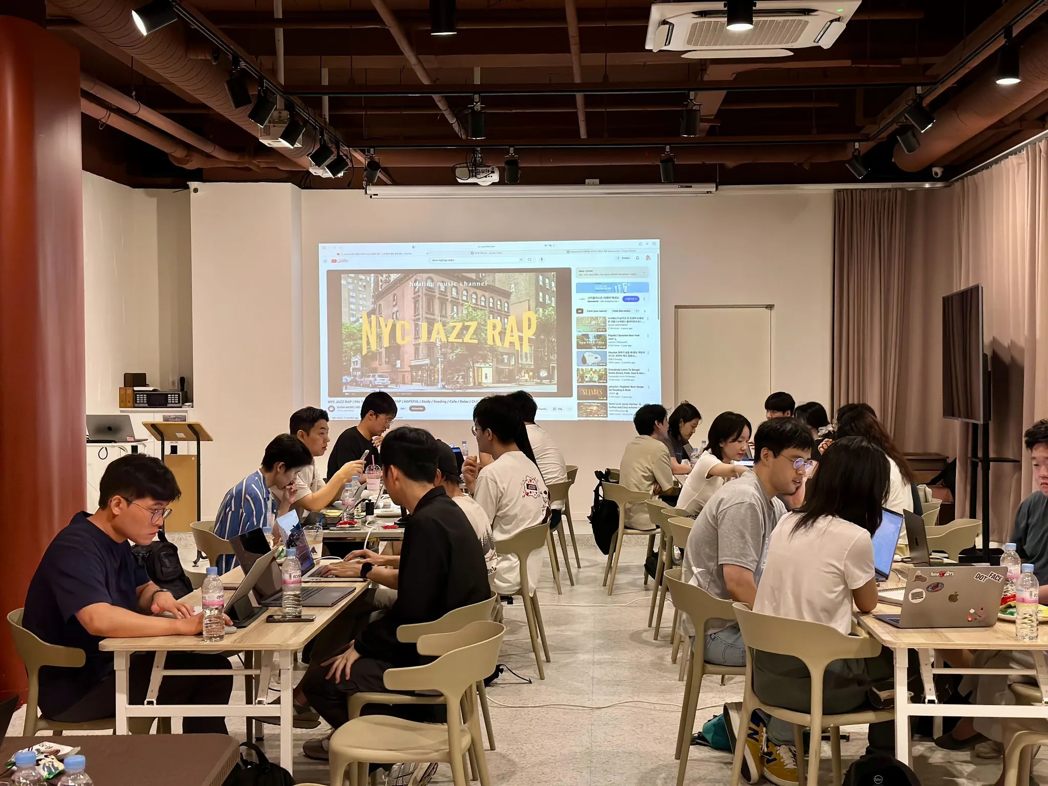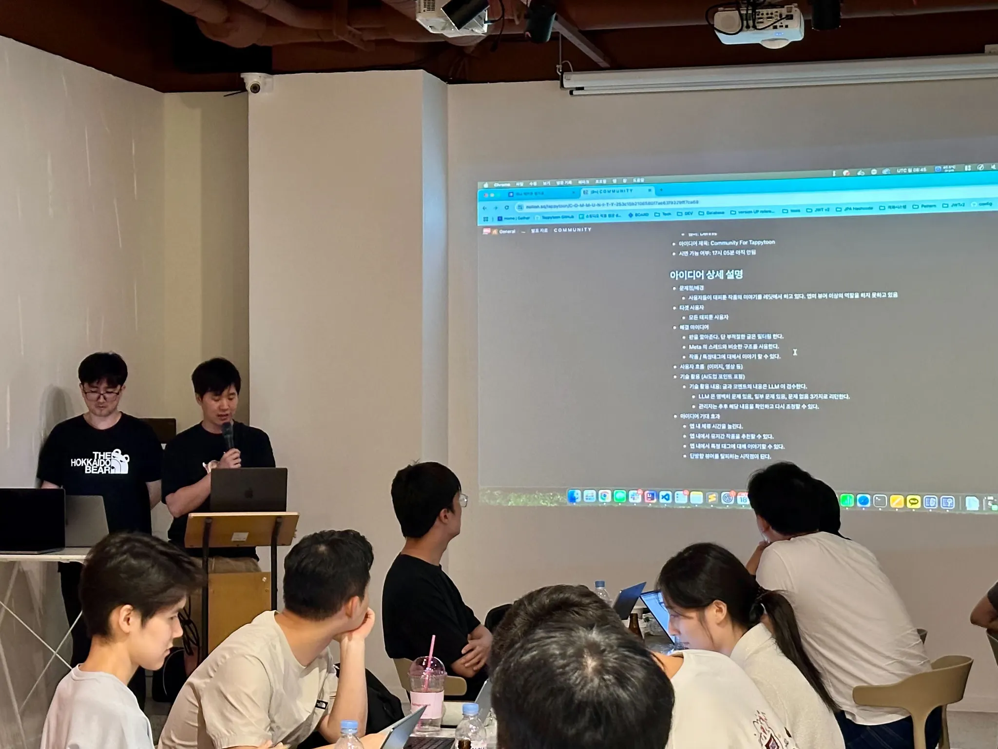 간단한 오리엔테이션 후, 참가자들은 각자의 노트북 앞에서 본격적으로 아이디어를 구체화하고 개발에 몰두했습니다. 행사장 곳곳에서는 열띤 토론과 함께 기록하고, 디자인하고, 코드를 검토하는 모습이 이어졌습니다.
