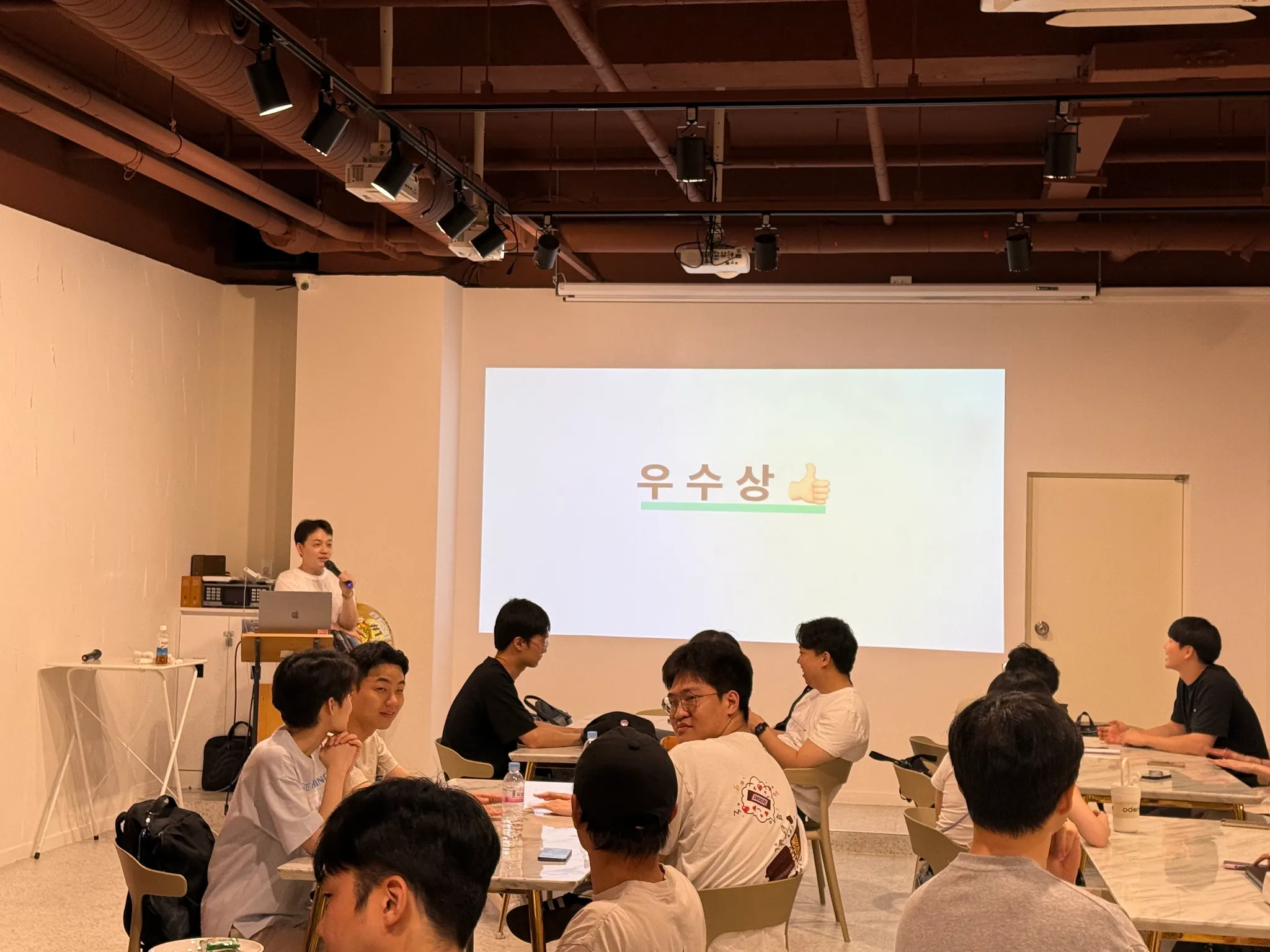 모든 팀의 발표가 끝나고, 공정한 심사를 거쳐 인기상 2팀, 우수상 1팀, 대상 1팀을 선정했습니다.
