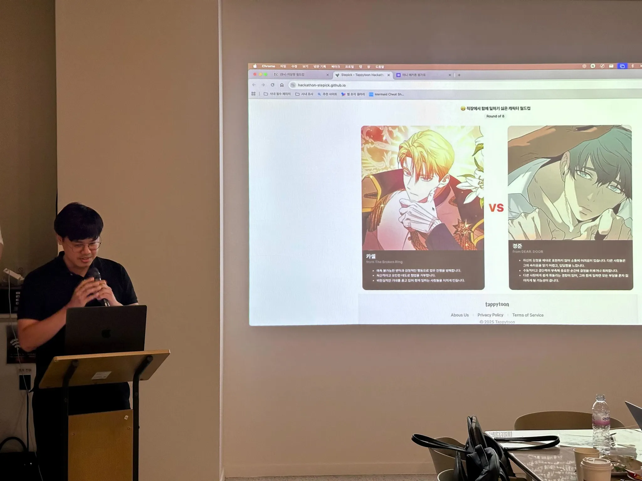 발표팀 외 참여한 대부분의 참가자들도 TappyChat 서비스의 필요성과 가능성에 공감했고, 탄탄한 기획력과 기술 완성도로 모든 팀들 중에서 가장 높은 점수를 받을 수 있었습니다.