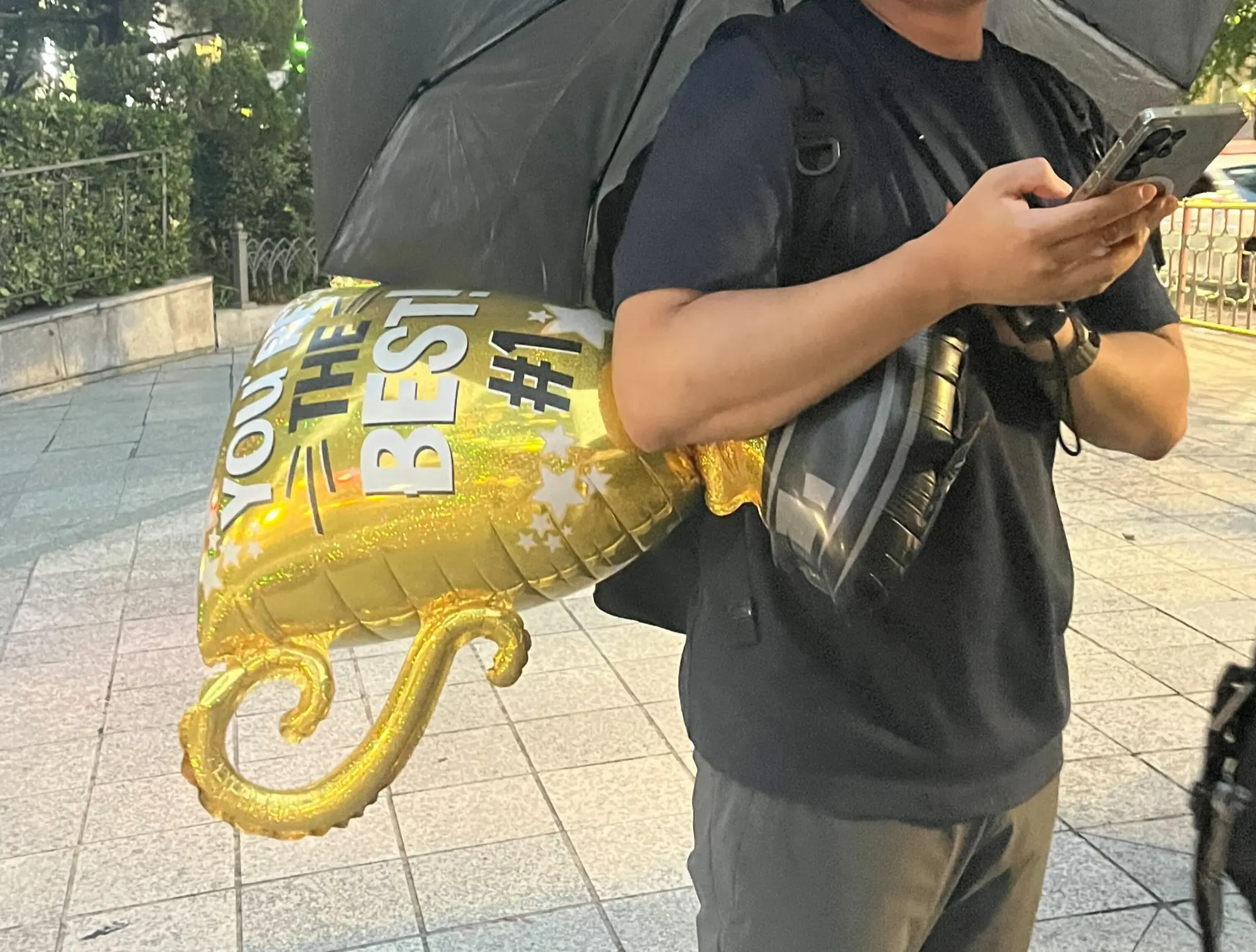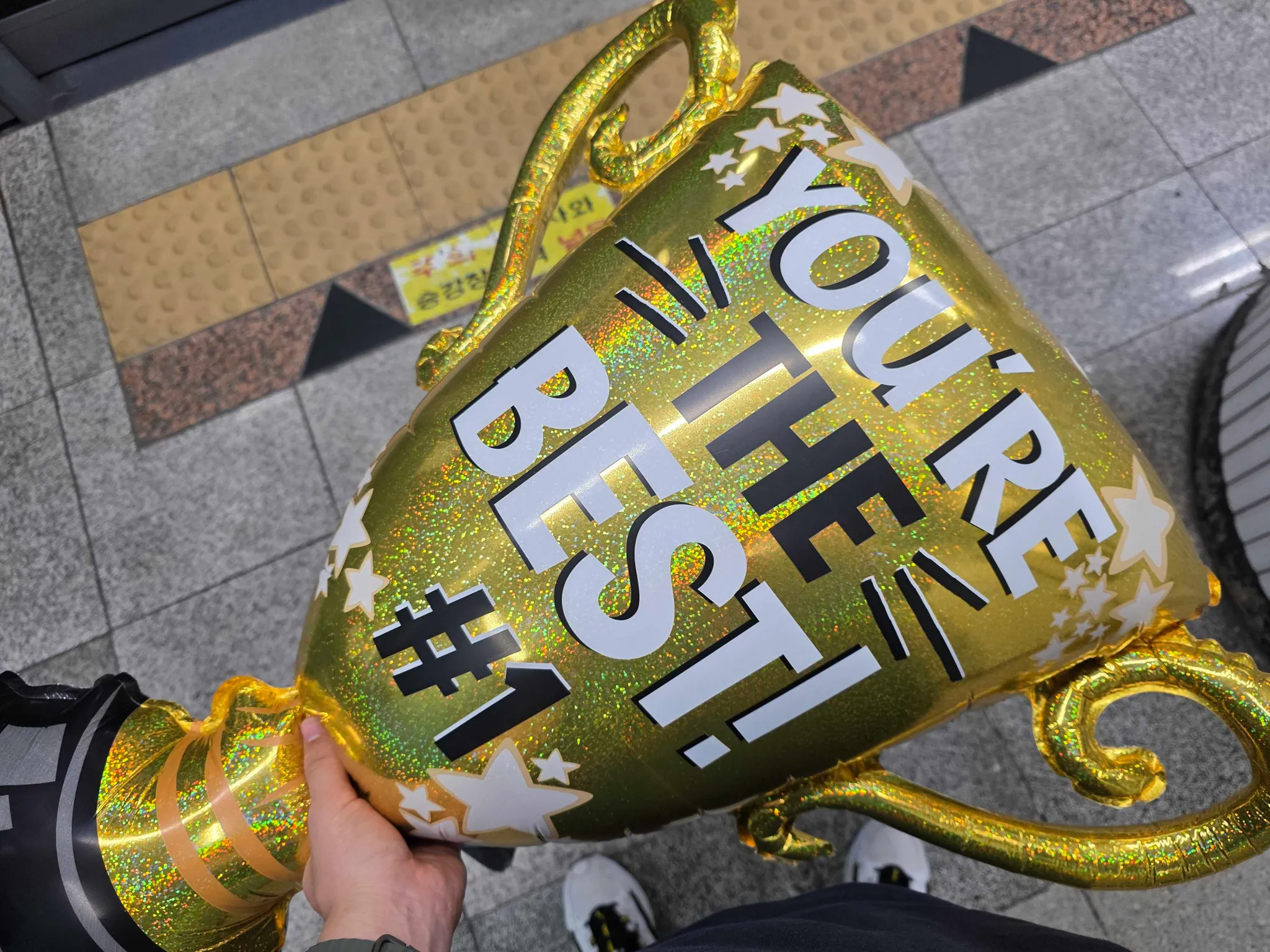 빗 속에서도 트로피를 소중히 챙기는 A군
