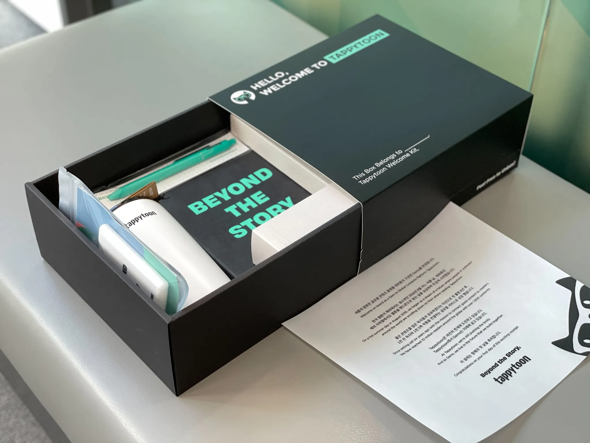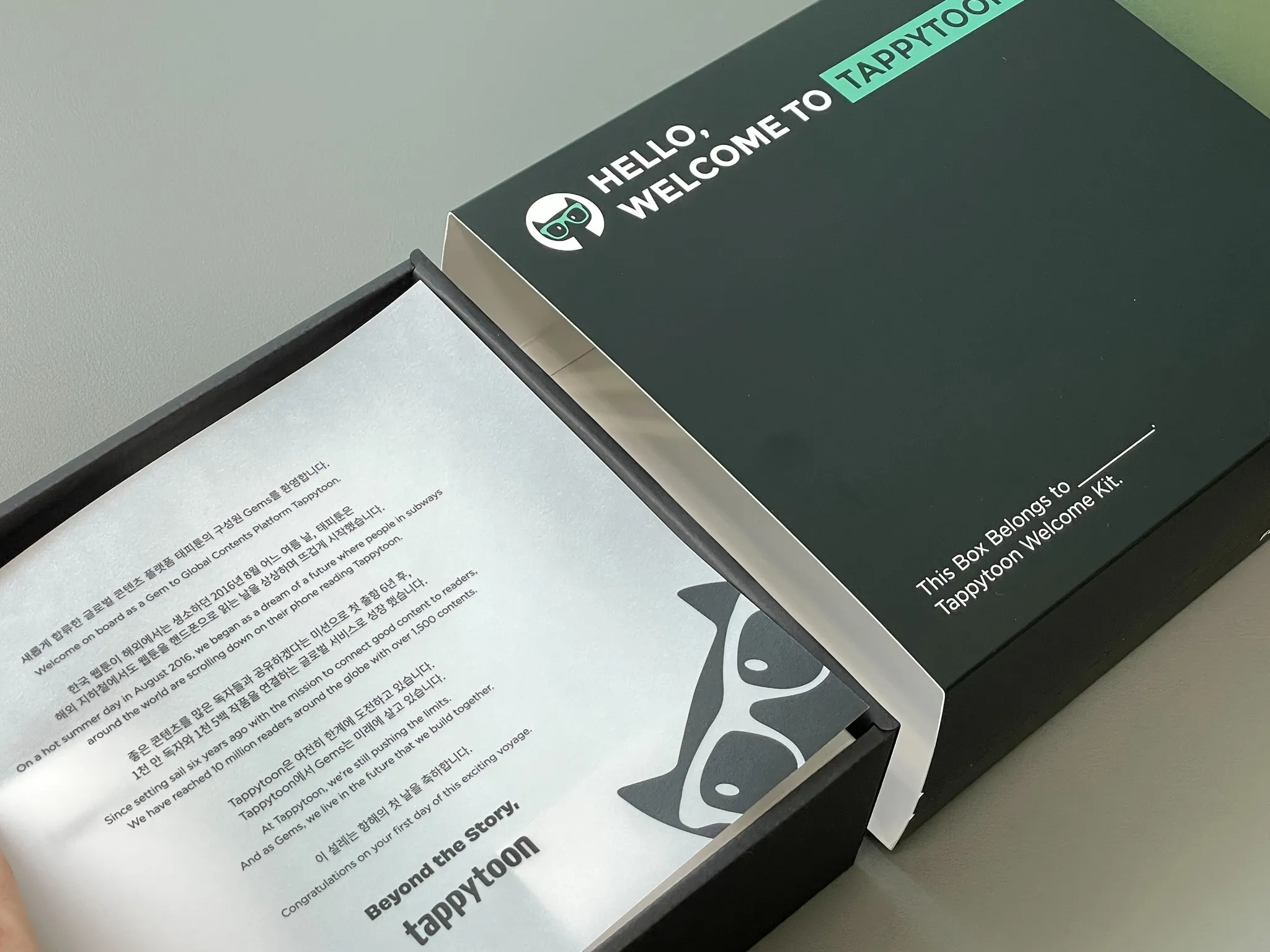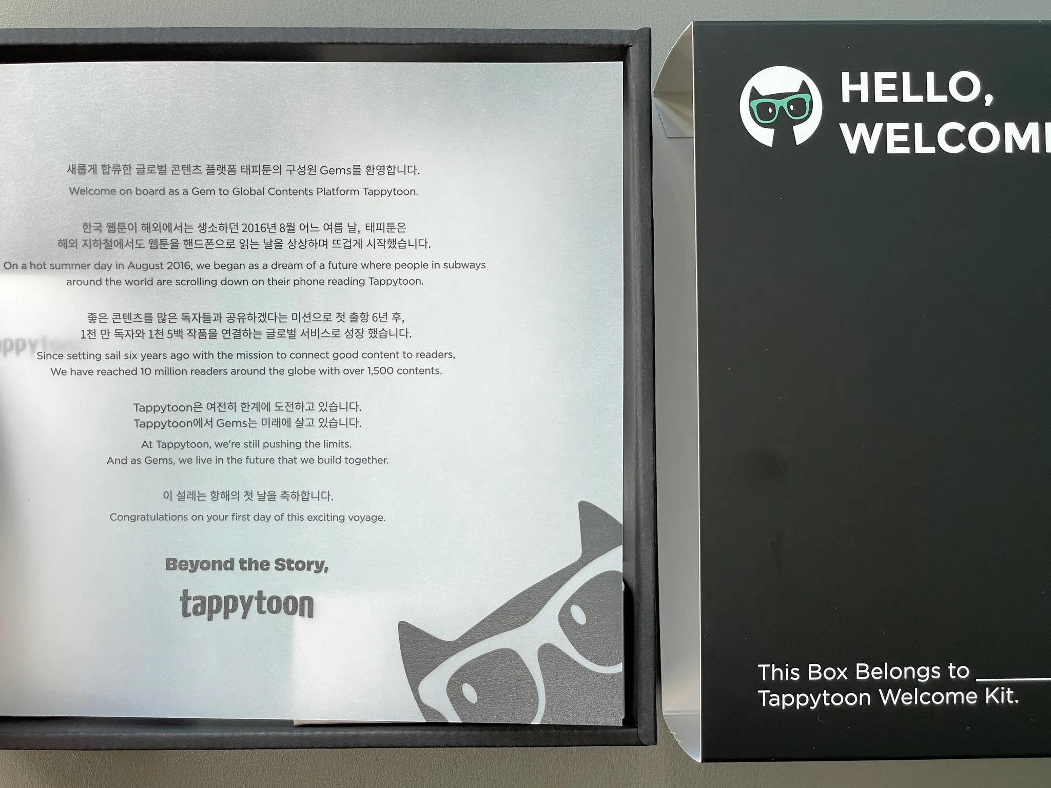 신규입사자를 환영하는 문구부터 태피툰의 미션과 가치를 엿볼 수 있는 가슴 뛰는 스토리가 담긴 웰컴레터.