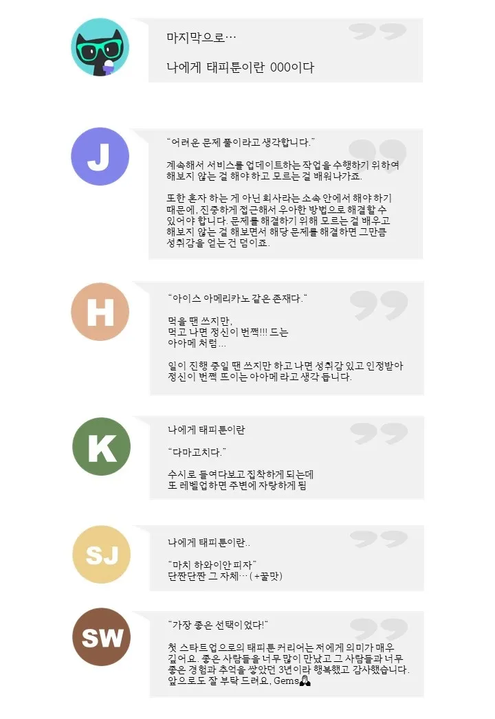역시 태피툰 Gems 답게, 유익함과 재미 모두 놓치지 않는 분들이셨어요. 유쾌했던 인터뷰였습니다.