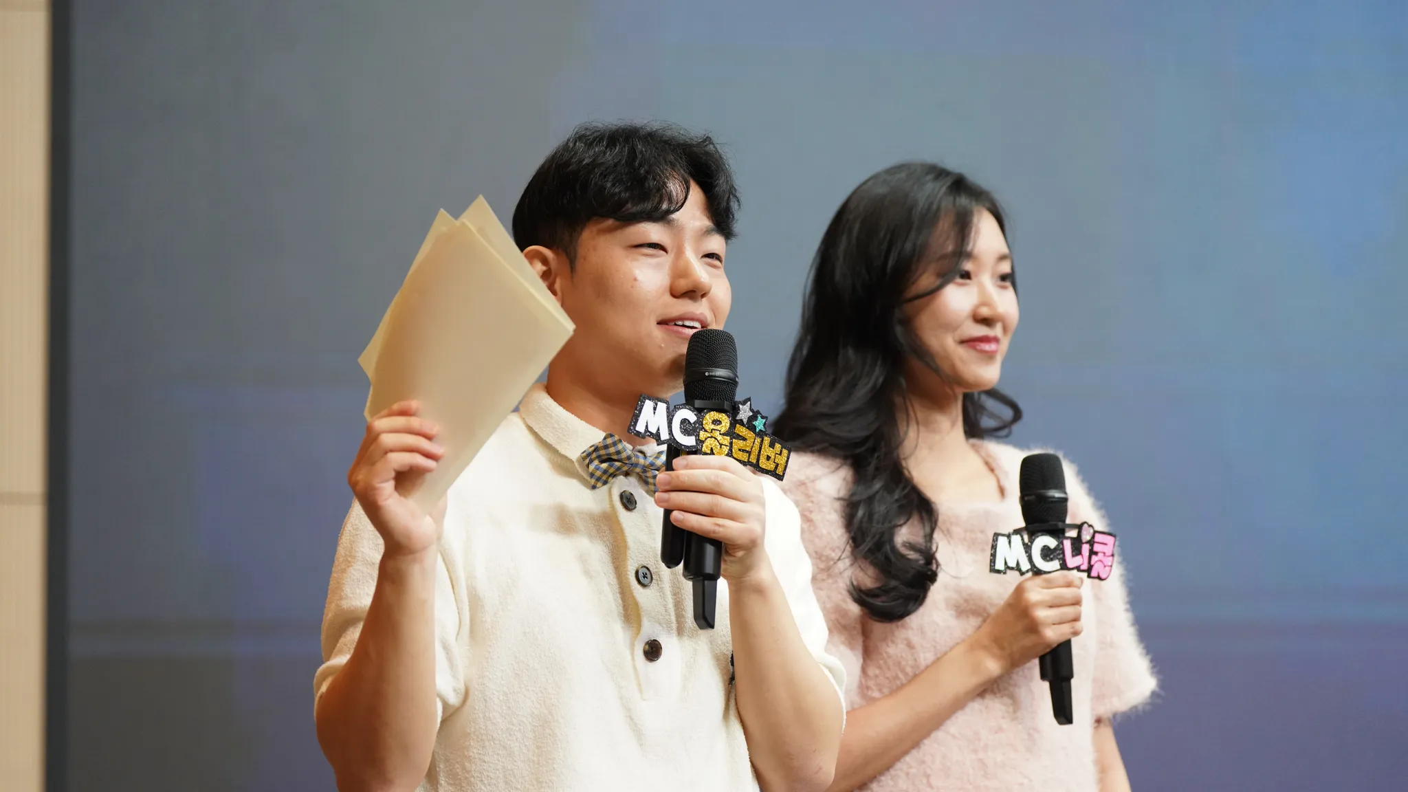1부의 첫 스타트를 오늘의 특별 MC 올리버와 니콜이 시작해 주셨어요. 보이밴드 PF아일랜드 소속 올리버와 걸그룹 태피핑크 메인래퍼 니콜이, 바쁜 투어 일정 속에서도 태피툰 신년회를 위해서 흔쾌히 진행을 맡아주셨답니다(세계관 절대 지켜…)
