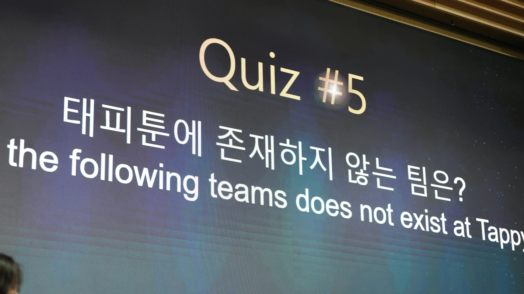 신년회 당일 아침 Slack에 깜짝 발표 된 랜덤팀과 함께 팀원들간의 친밀도를 높이고! 태피툰에 대해서 더 알가갈 수 있는 시간인 NEW QUIZ
