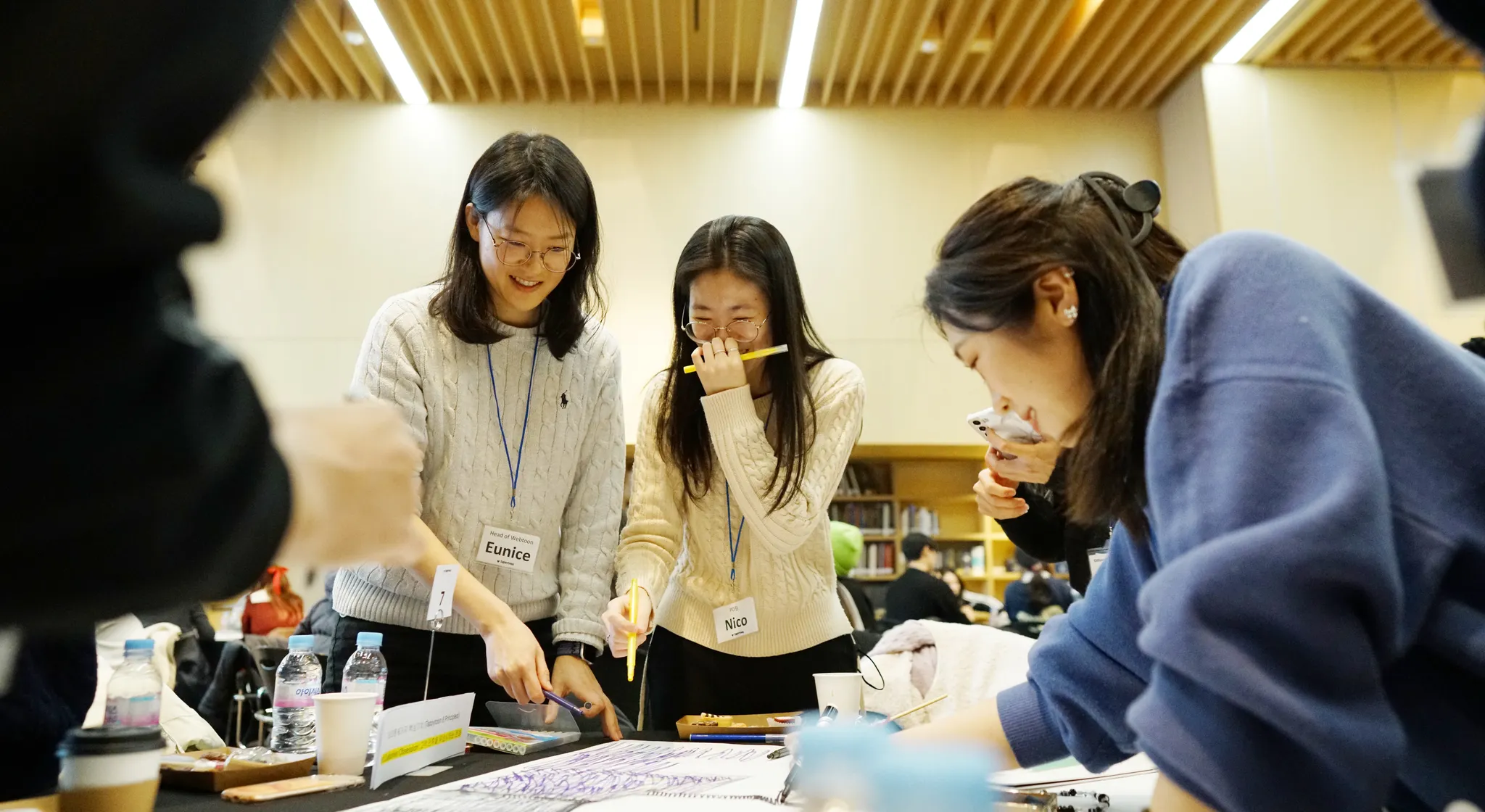 통통 튀는 아이디어를 모아서 태피툰의 이야기를 함께 완성하는 시간인 NEW TEAMS. 태피툰의 10년 후를 그리는 팀빌딩 순서에서는 정말 다양한 아이디어와 그림들로 각자 팀의 포스터들을 각양각색으로 채워나갔어요