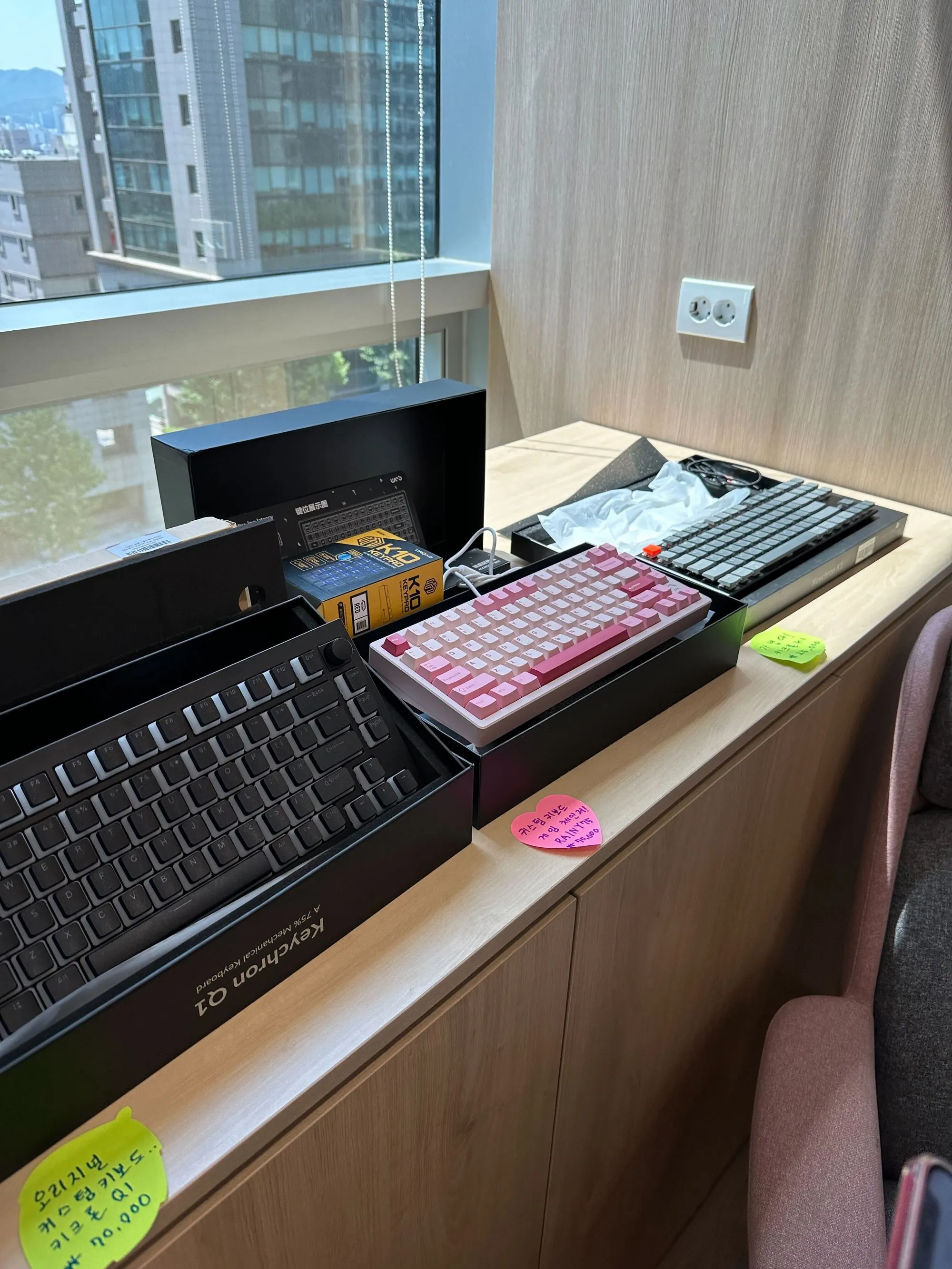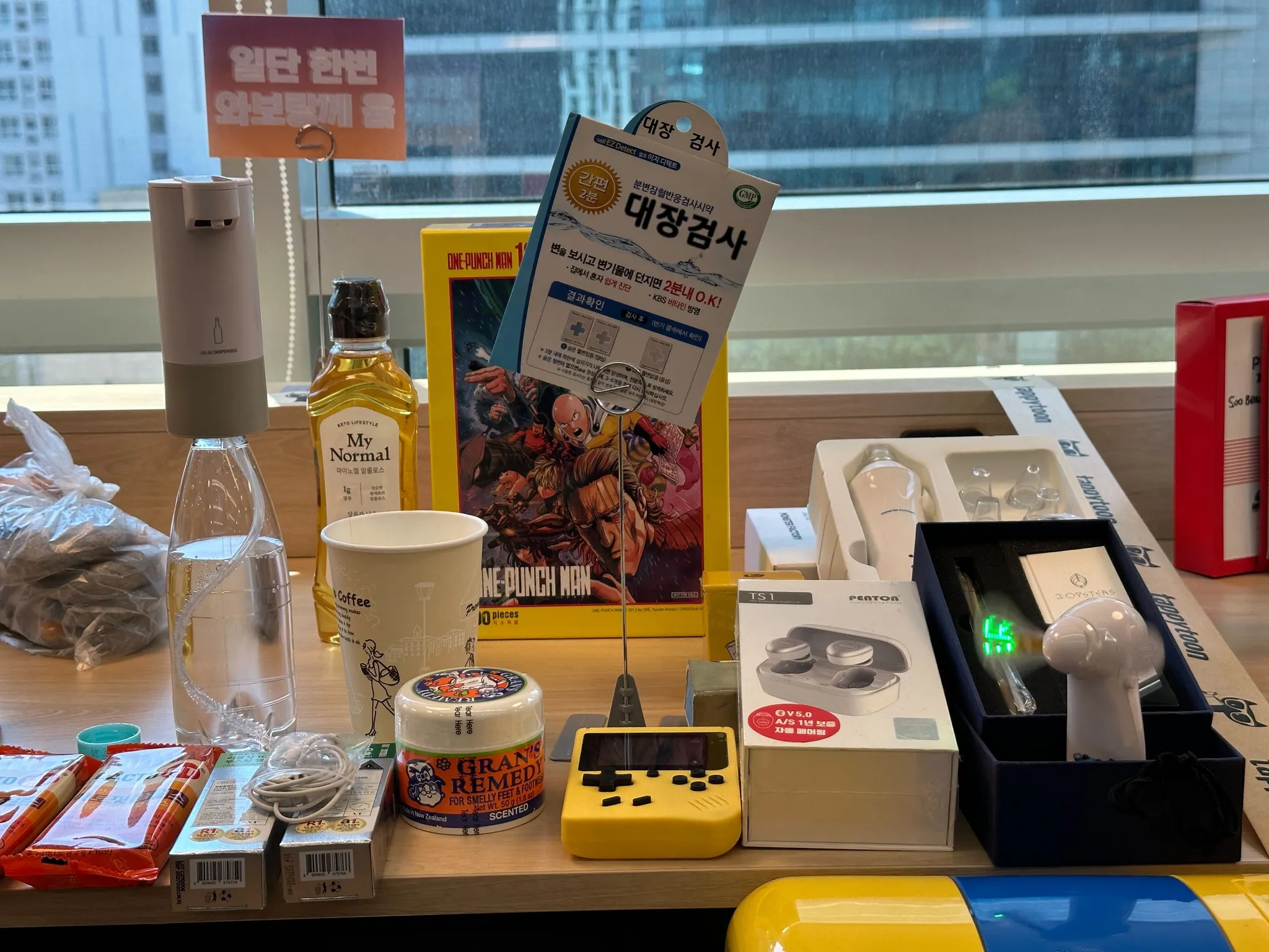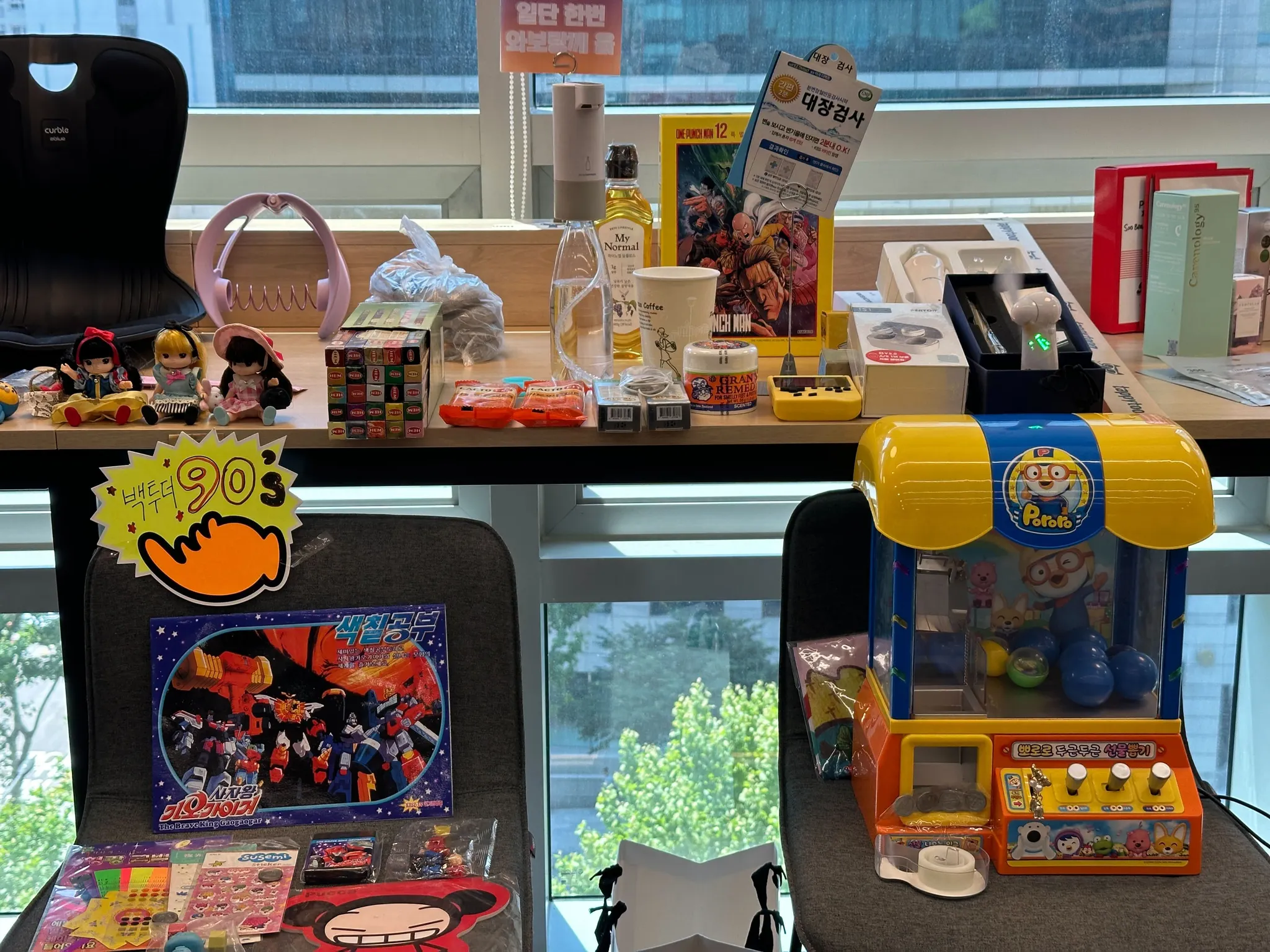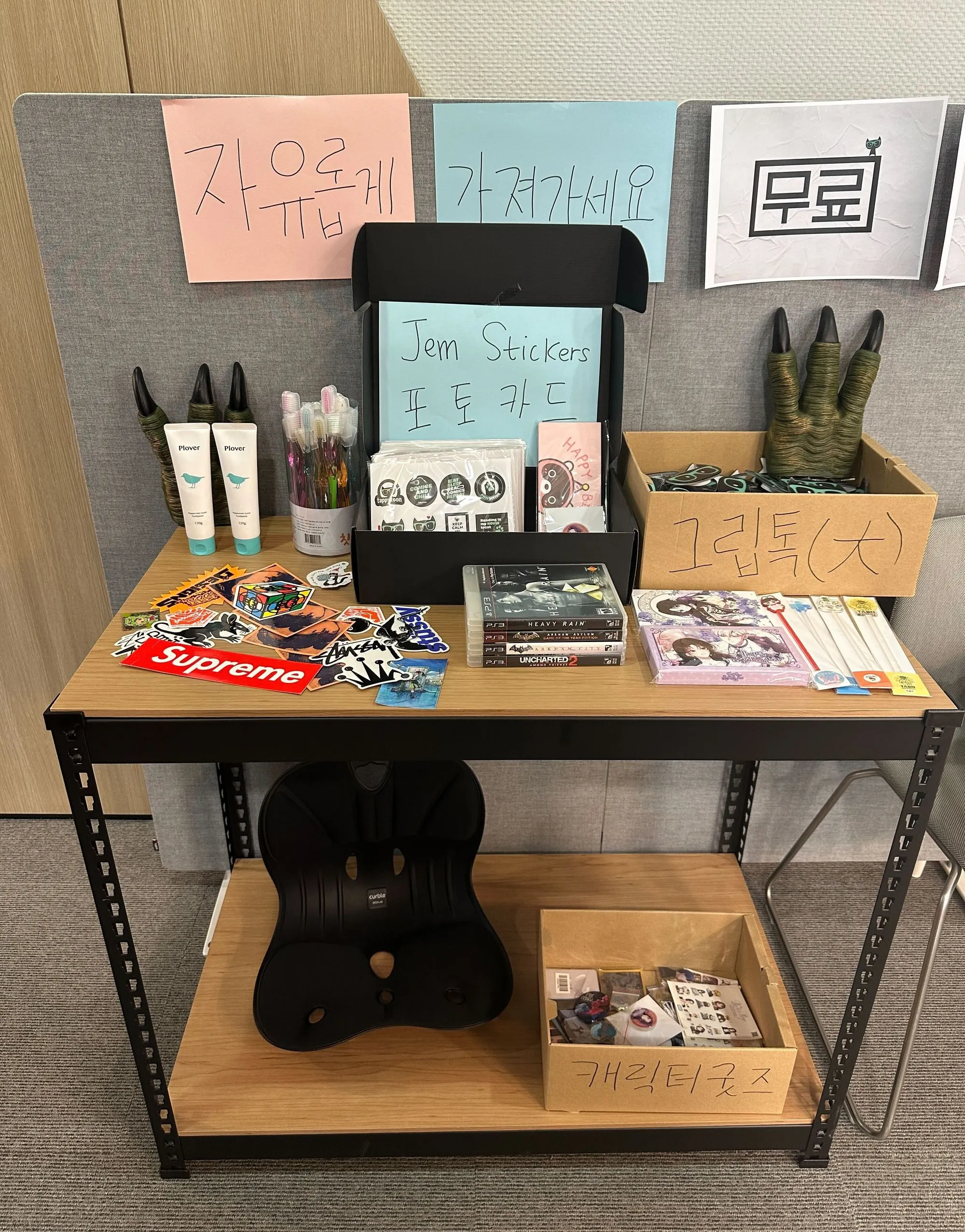 덕후존 역시 콘텐츠 플랫폼 회사 답게, 덕질(?) 관련 물건들이 참 많았습니다. 회사 곳곳에 숨어 계셨던 우리 샤이 덕후분들… (아직 덕밍아웃 안 하신 분이 계시다면 조용히 손을 들어 주세요) 다양한 애니, 만화, 웹툰, 아이돌 굿즈부터 시작해서 커스텀 키보드까지… 보는 즐거움이 한 가득이었던 덕후존!