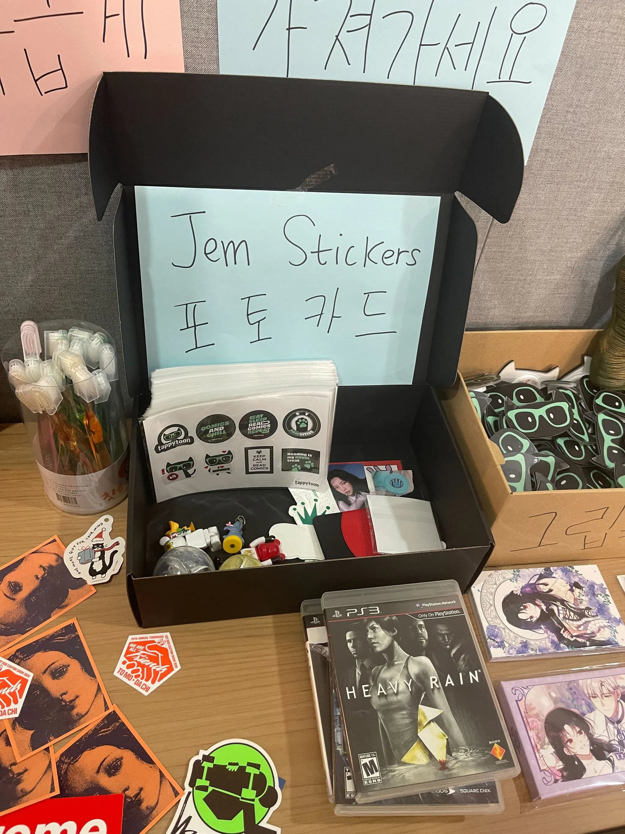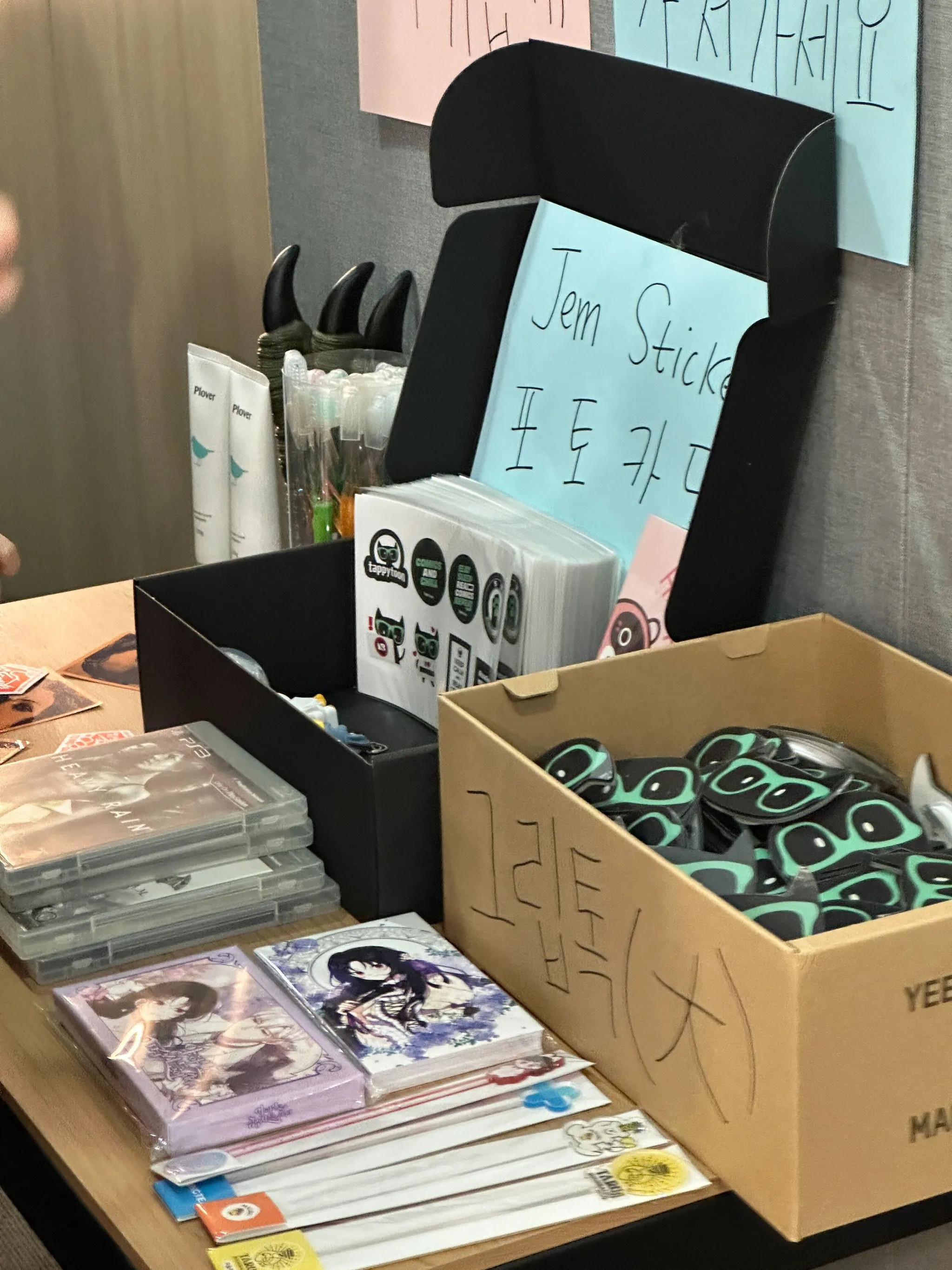 무료나눔존 마음이 따뜻한 Gems분들의 나눔코너 또한 성황리에 진행 되었어요. 구하기 힘든 고급스러운 양장본 책부터, 블루투스 스피커, 각종 화장품 및 스킨케어 제품, 캐릭터 배지 및 스티커 그리고 우리 태피툰의 귀여운 마스코트 jem 그립톡까지! 무료나눔 코너 덕분에 이 날 빈손으로 돌아간 분은 한분도 없었다는 사실~