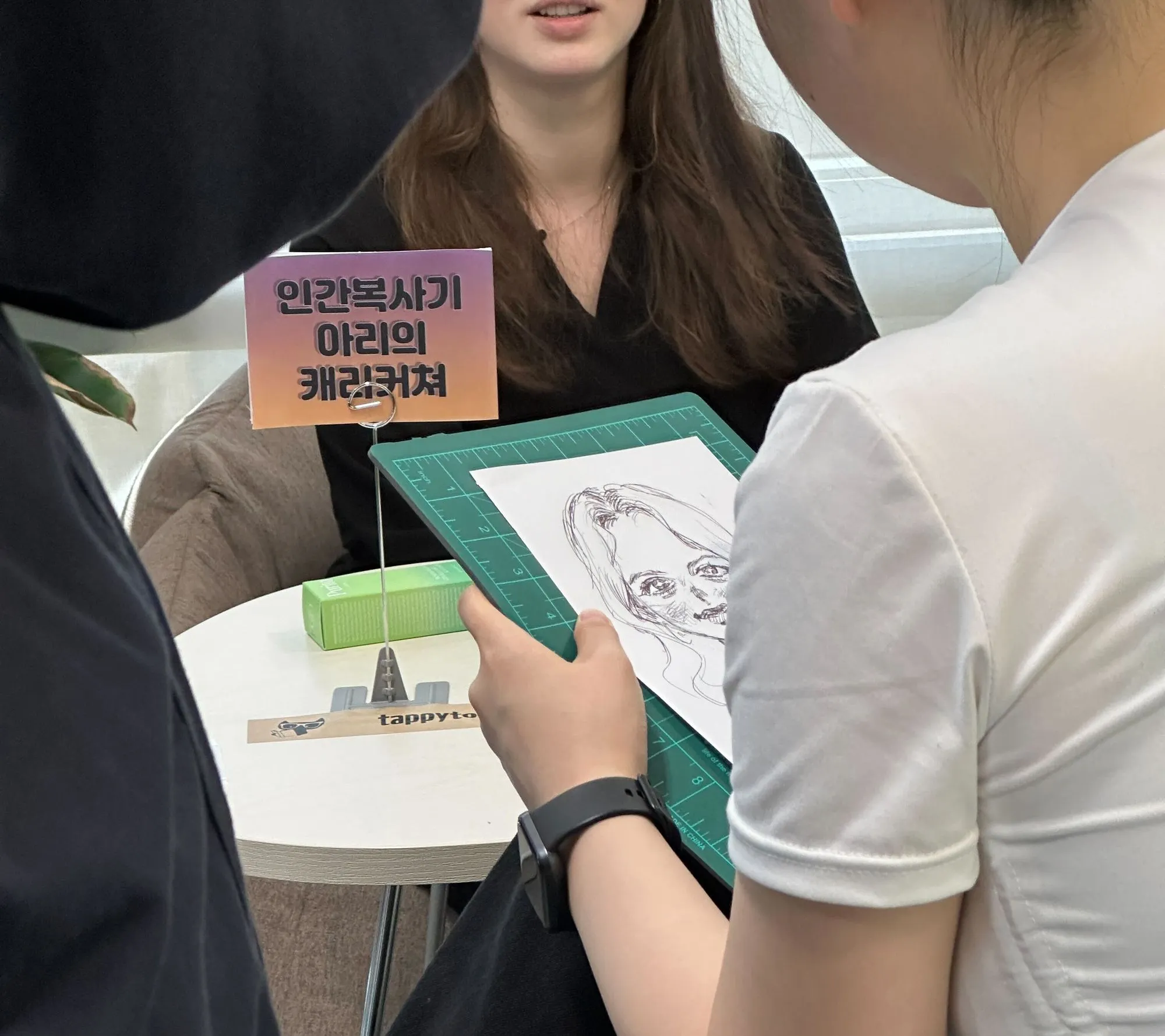 핸드메이드존 그동안 태피툰에 금손이 많다고 소문만 들었는데, 이날 드디어 눈앞에서 증명이 되는 날이었어요. 손으로 한땀한땀 만들어주신 모루인형, 쥬얼리, 수세미 가방, 파우치의 디테일을 보면서 감탄했어요. 그리고 이번 Gems Market에서 캐리커쳐 부스도 아주 인기였답니다.