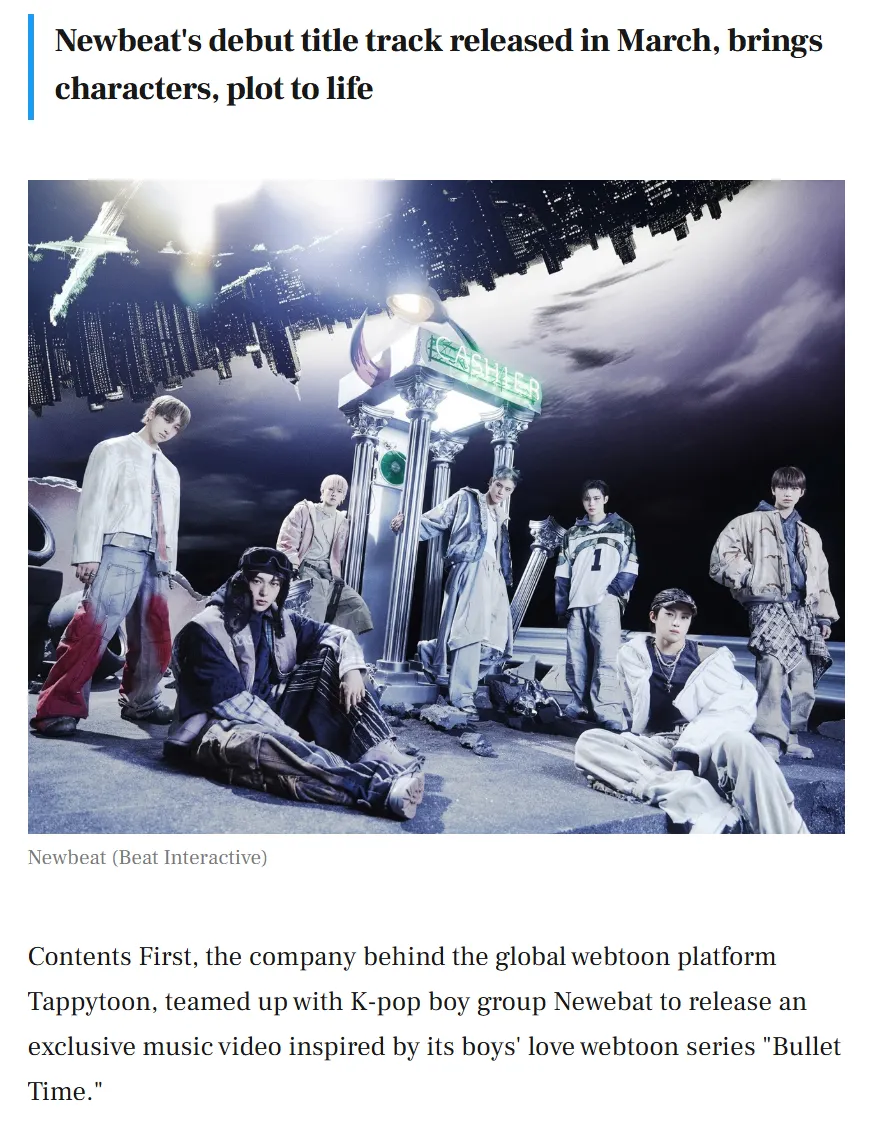 Tappytoon teams up with K-pop group Newbeat for 'Bullet Time' webtoon music video